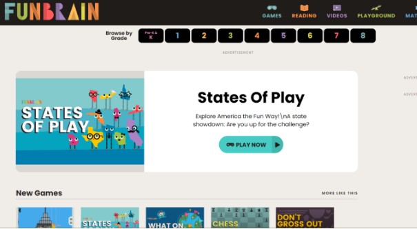 Funbrain은 유치원부터 초등 전체 학년의 학생들을 위한 교육용 게임과 활동을 제공하는 사이트로, 수학뿐만 아니라 영어 읽기, 과학 등 다양한 주제를 다루고 있습니다. 이 사이트 또한 게임과 학습을 결합하여 학생들이 즐겁게 학습할 수 있도록 설계되어 있습니다. 무료로 이용할 수 있다는 큰 장점이 있습니다. 해외에서는 이미 부모와 선생님 학생들 모두에게 인기가 좋다고 합니다.